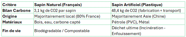 Dans ces conditions, le sapin de Noël soutient l'emploi rural, a un bilan carbone neutre voire positif, et s'inscrit dans une boucle d'économie circulaire. À l'inverse, le sapin artificiel reste un produit pétrolier importé, difficilement amortissable écologiquement.